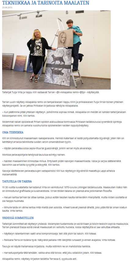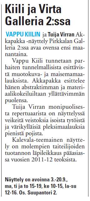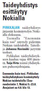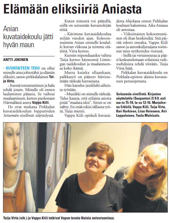 Näyttelyn avajaisista Kangasalan Sanomissa